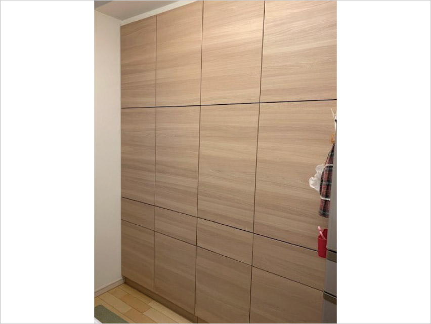 沢山の物もあり断捨離しつつも収納力を増やし、開き戸のキ...