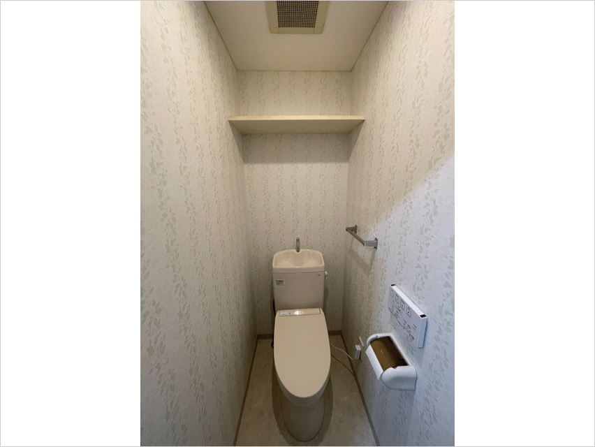 柄のパネルでデザイン性もお掃除もし易いトイレ
