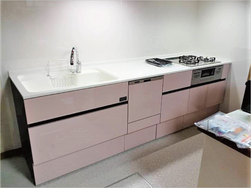 【Yさま邸】淡いピンクが主役のキッチン