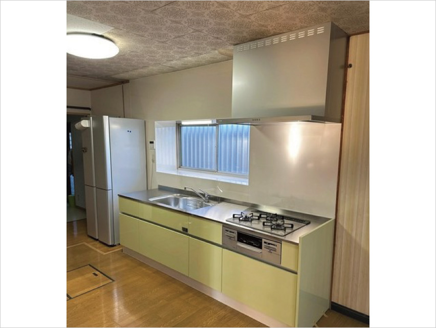 L型キッチンをI型キッチンに入れ替、フローリングと内装...