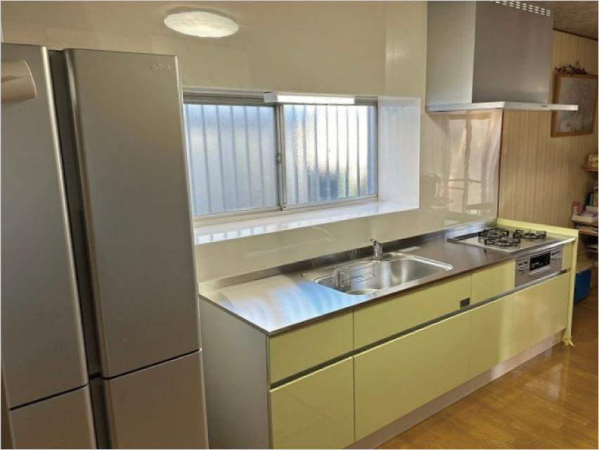 長年使っていたキッチンを明るくフレッシュなイエローに。お部屋全体が明るくなりました。