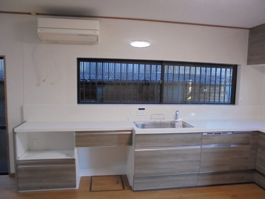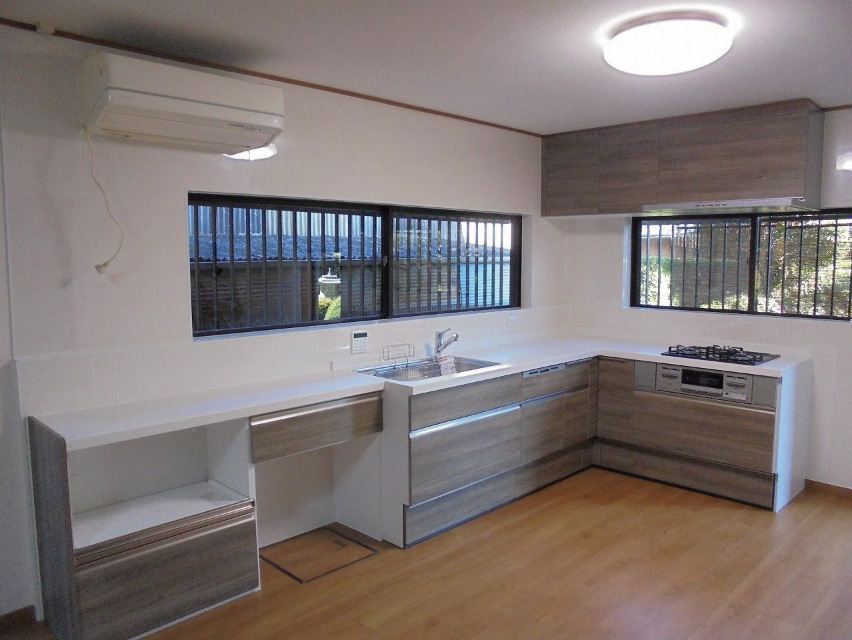 L型キッチンをI型キッチンに入れ替、フローリングと内装...