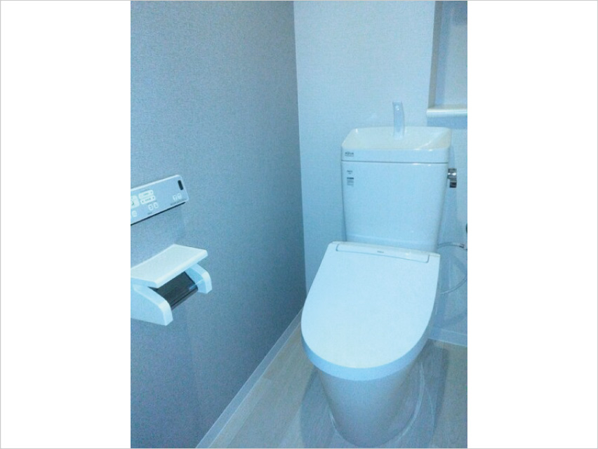アクアセラミック付トイレにすることで、お掃除の手間を軽減。内装(天井・壁・床)も新しく貼り替え新築のトイレに生まれ変わりました。