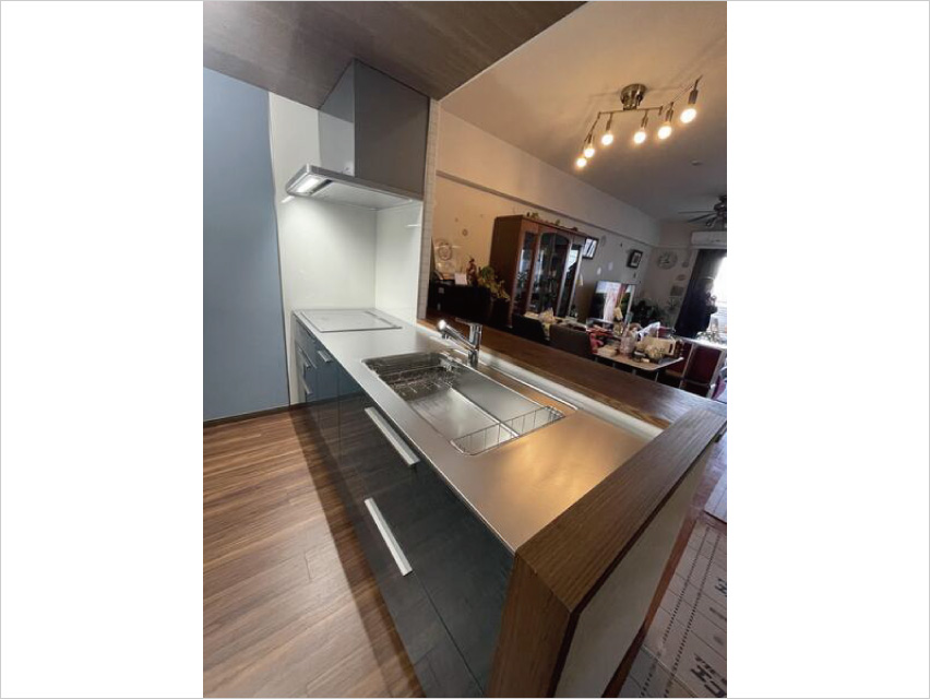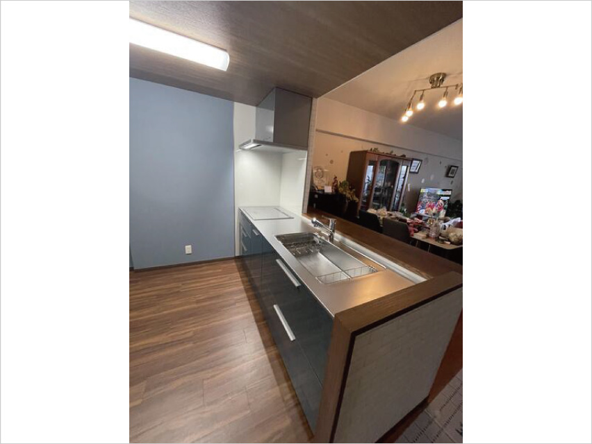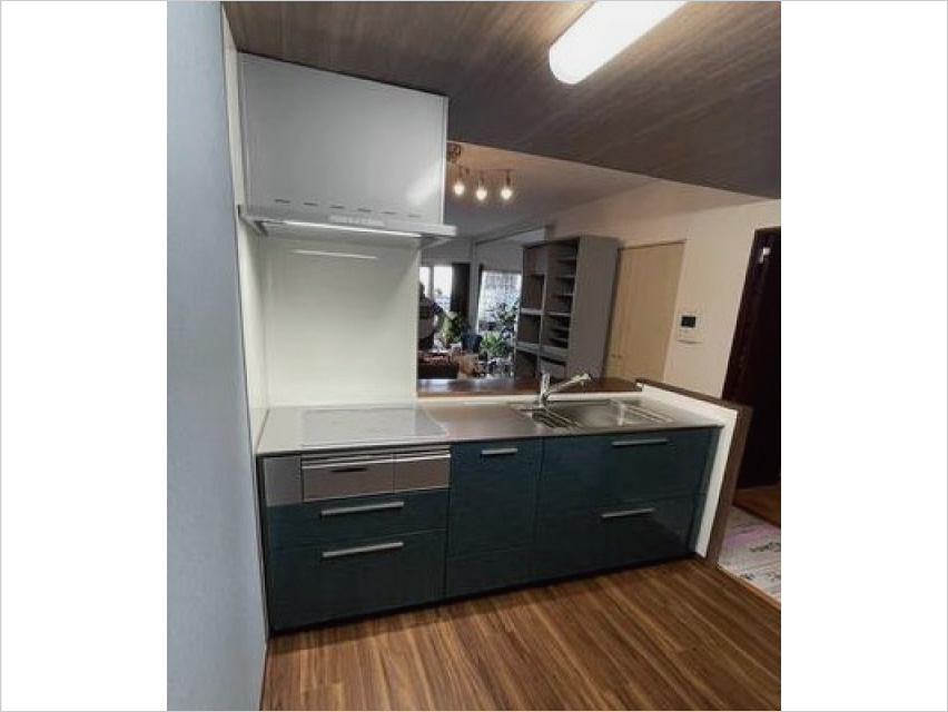 L型キッチンをI型キッチンに入れ替、フローリングと内装...