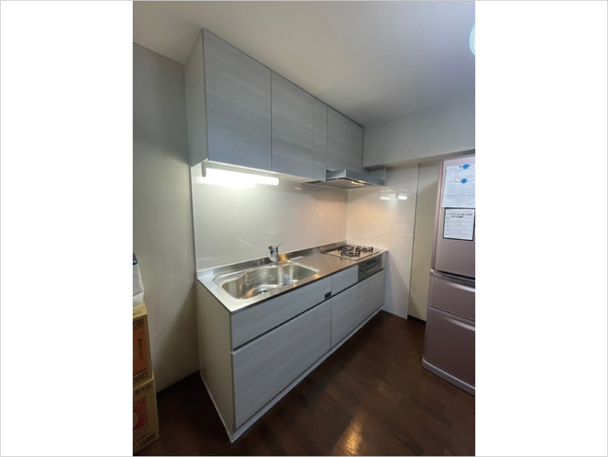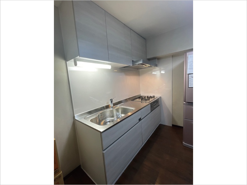 L型キッチンをI型キッチンに入れ替、フローリングと内装...