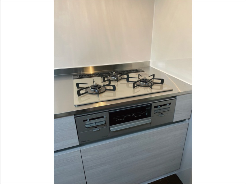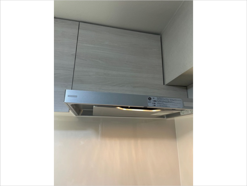 レンジフードと吊戸棚を同じ高さに揃えてスッキリとした印象に仕上がりました。