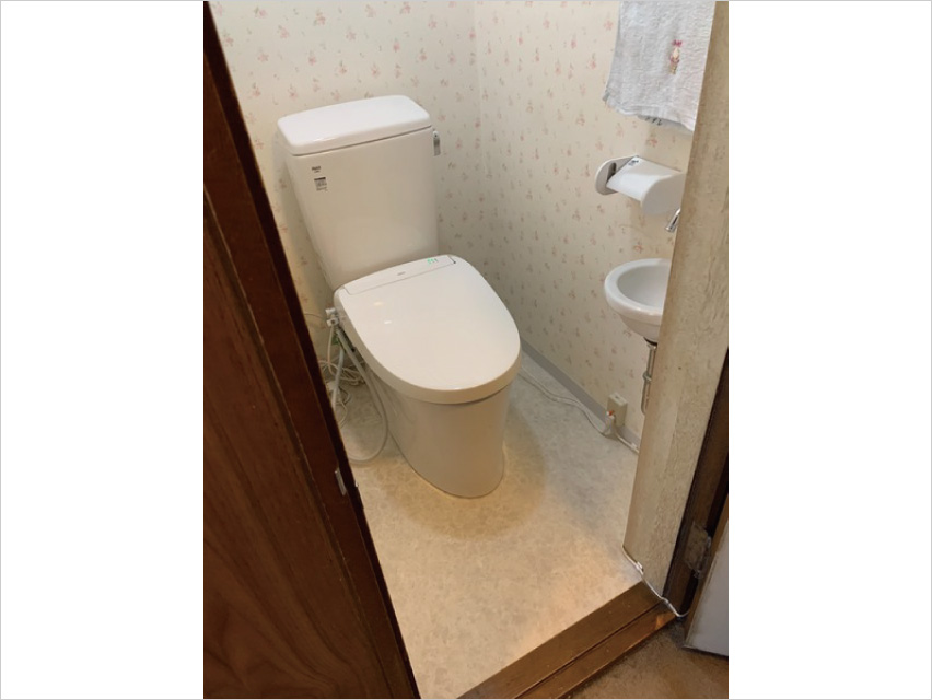 廊下からの段差を解消した事と、操作リモコンも壁付けとなり体への負担を軽減。トイレは節水型となり節約に繋がりました。