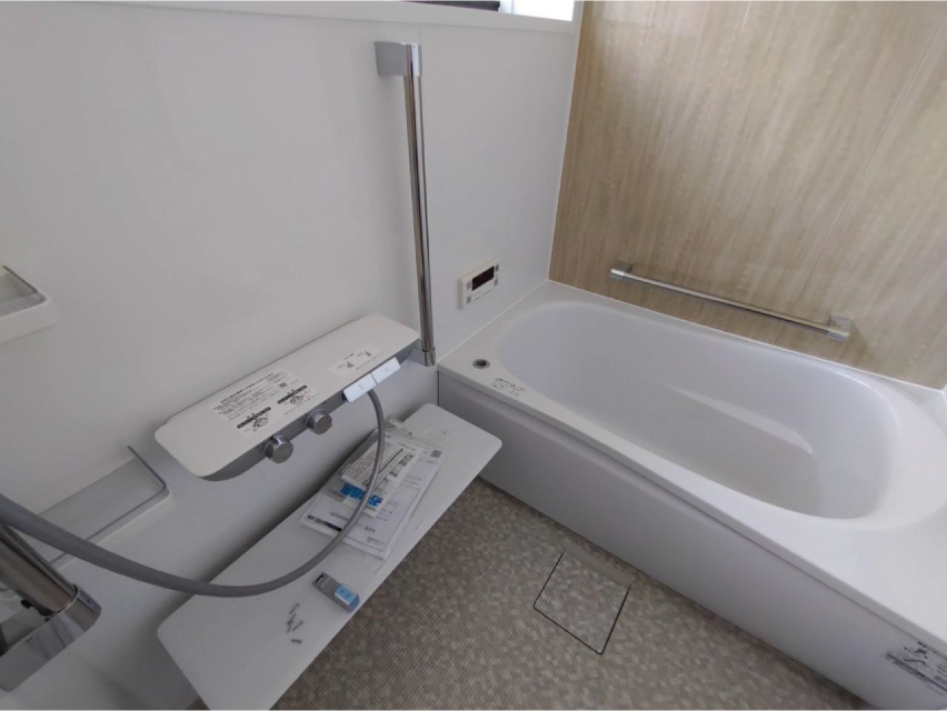 4面同色の高級感ある浴室と使い勝手の良い洗面