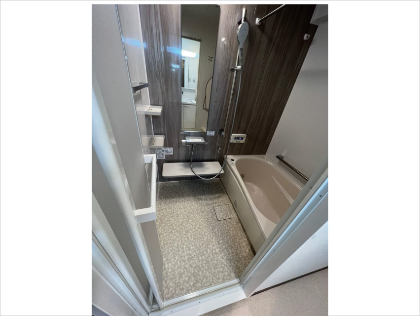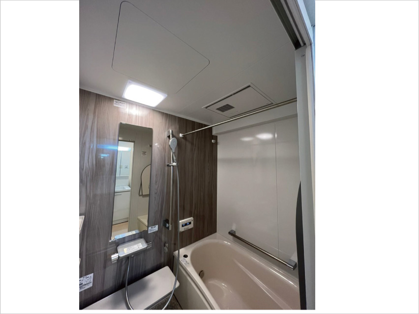 広々した浴槽に変更し、自然とリラックスできる色合いに統一。節水型や保温機能が標準装備されており、省エネかつ一日の疲れがとれ、想像以上に気持ちよいバスタイムが楽しめる。