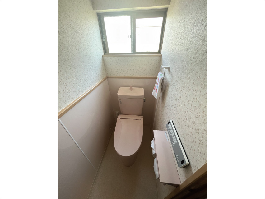柄のパネルでデザイン性もお掃除もし易いトイレ