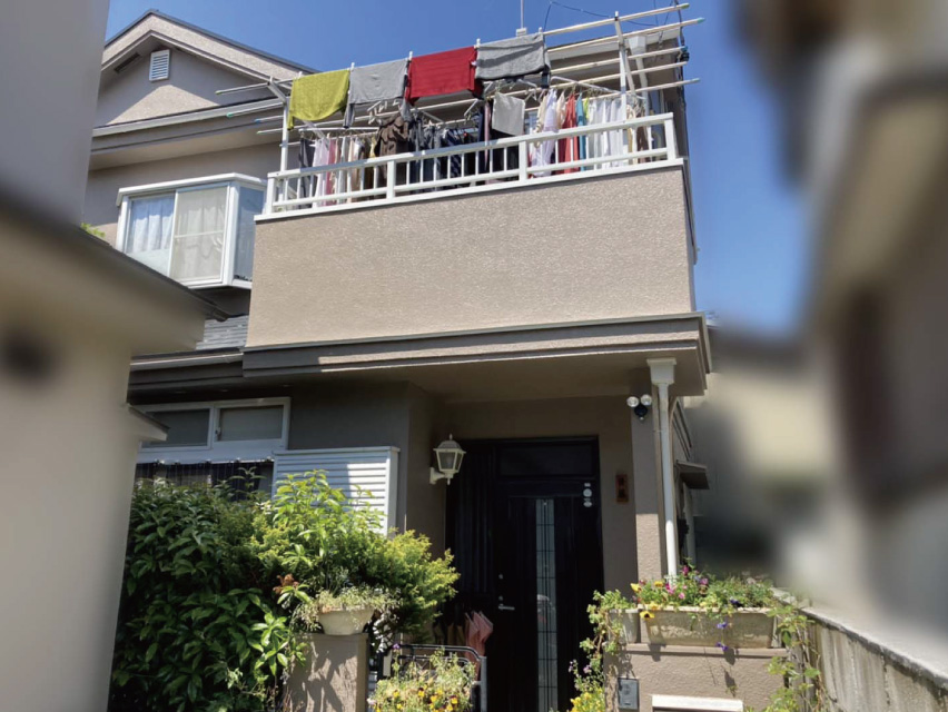 白系の色での外壁塗装となり、さわやかな印象の中でも清潔感がとても出ています