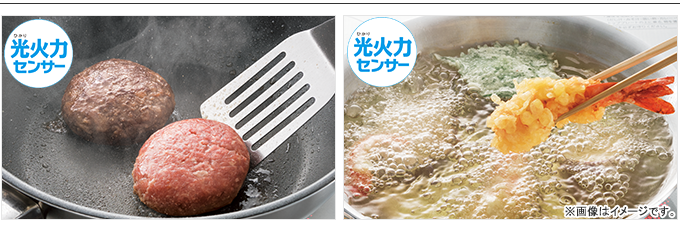 鍋底のこげつきお知らせを追加した光火力センサーを搭載です。