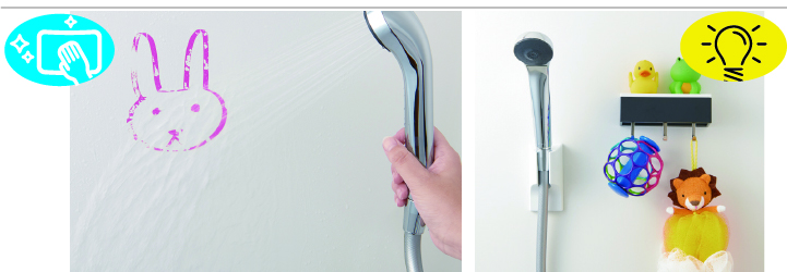 ホーロー製の浴室パネルは洗剤なしでらくらくキレイ。傷がつきにくいので、水垢やカビなどの汚れも入り込みにくい。マグネットがくっつくので収納などのカスタマイズが自由自在。