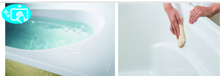 アクリル人造大理石を100%使用した贅沢な浴槽。なめらかで肌あたりが良くお手入れが簡単。固く傷にも強いため、キレイが長続きします。