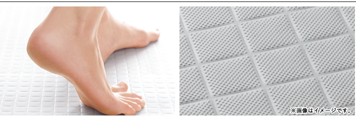 クッション性と保温効果のある浴室床。足裏にやわらかく、冷えにくい。
