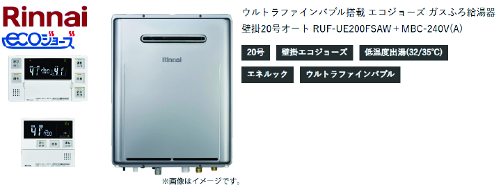 ■Rinnai エコジョーズ・ウルトラファインバブル「RUFーUE200FSAW+MBC-240V(A)」(20号・オート)
