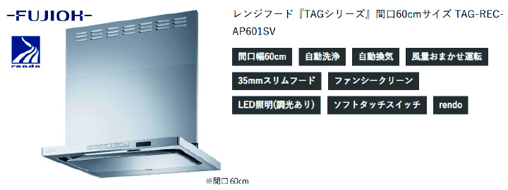 ■レンジフード『TAGシリーズ』間口60cmサイズ TAG-REC-AP601SV
