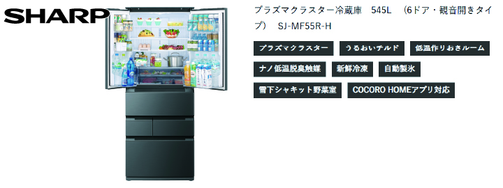 ■プラズマクラスター冷蔵庫545L(6ドア・観音開きタイプ) SJ-MF55R-H