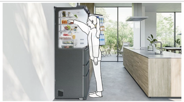 奥行き薄型とワイドな庫内で、奥までしっかり見渡せます。さらに上段まで手が届きやすいから、使い忘れを防いでムダのない生活をサポート。