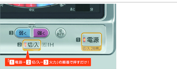 色で直感的に操作できる 火力2色ボタン
