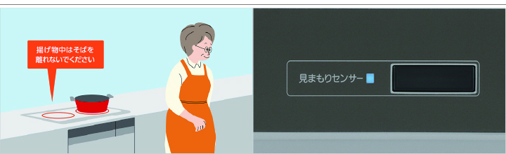 IH本体のまわりをワイドに見はる人感センサーを搭載