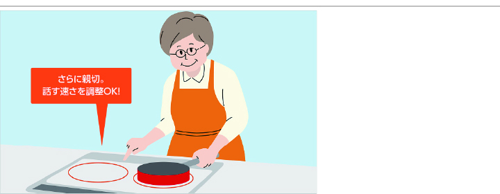 さまざまな操作の手順や注意喚起を、音声で教えてくれるお料理アシスト機能。